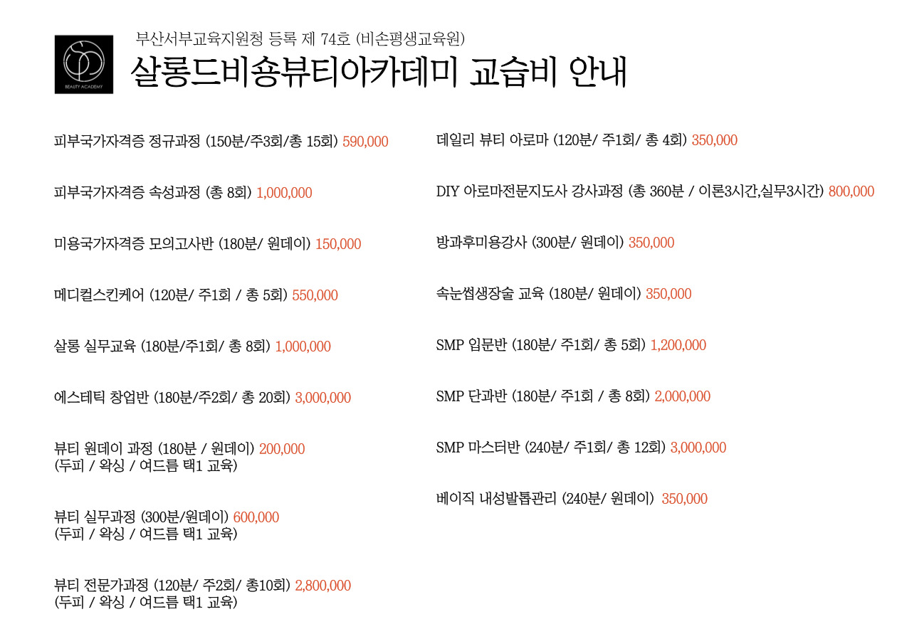 - 1. 미용사(피부) 국가자격증 정규과정 (150분/ 주 3회/ 총 15회)